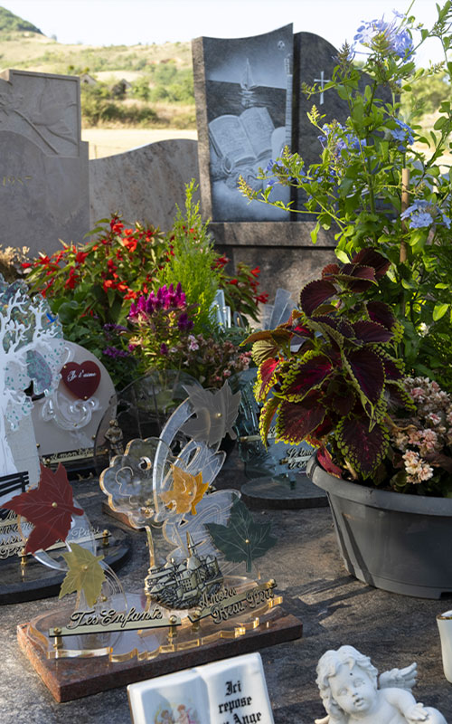 Entretenez le souvenir de vos proches tout au long de l’année. Aux familles éloignées ou empêchées de se déplacer, la Marbrerie Fabre-Bony propose un service de fleurissement et de nettoyage du monument funéraire. Vous souhaitez fleurir spécialement la tombe de votre défunt, pour la Toussaint ou pour une date anniversaire ? Vous souhaitez garantir son entretien optimal en permanence ? Nous vous conseillons pour le choix des fleurs et répondons à votre demande dans les délais souhaités. Confiez-nous l’entretien des tombes de vos défunts en toute quiétude.